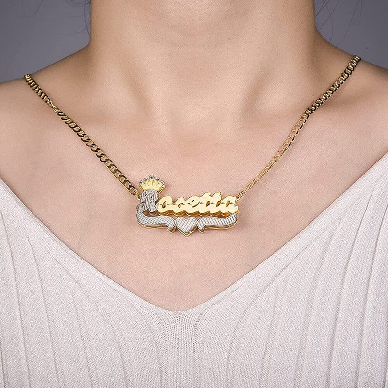 VVS Jewelry 3D zweifarbige, vergoldete Namenskette