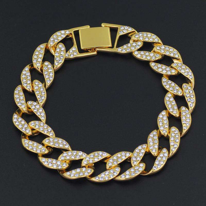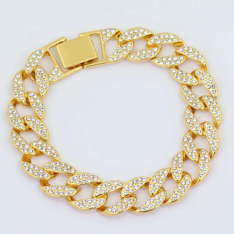 Kette und Armband aus 14 Karat vergoldeter, vollständig vereister Kubaner