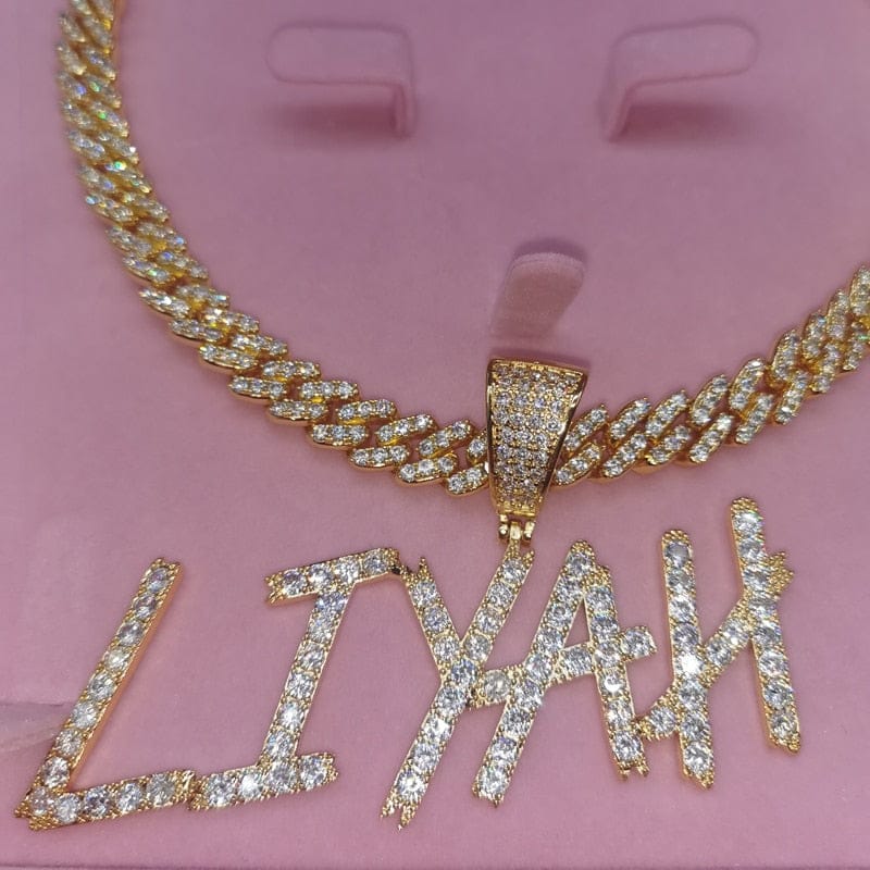 VVS Jewelry 9MM Custom Cuban Name Sharp Cursive Pendant Necklace