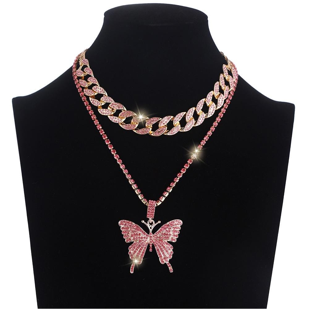 VVS Jewelry Cuban Link Butterfly Choker + FREE Tennis Choker