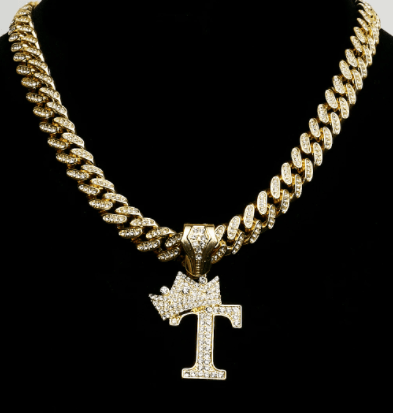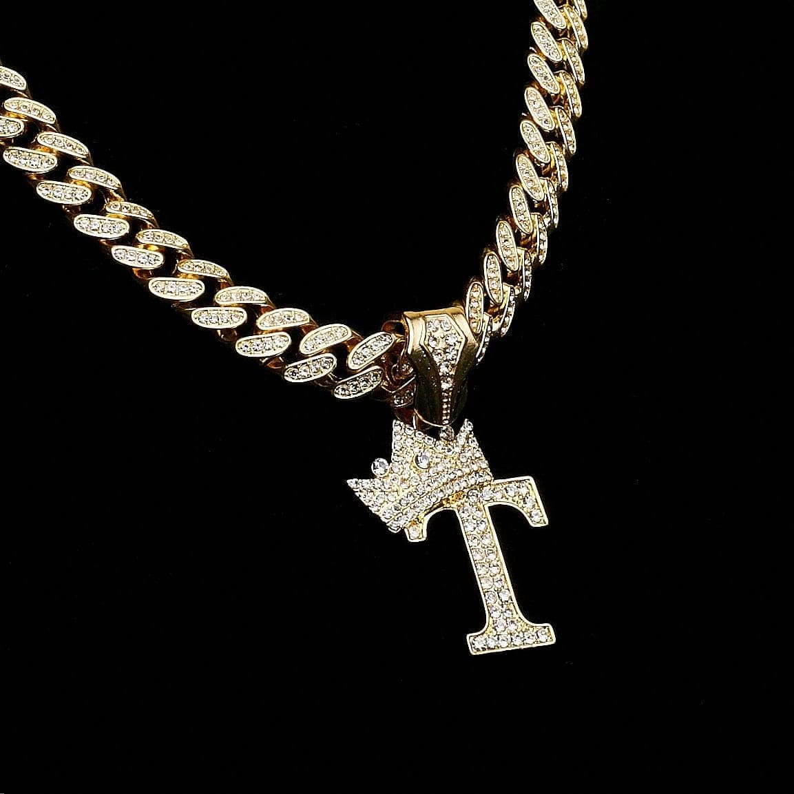 VVS Jewelry Gold Crowned Initial Cuban Pendant Chain