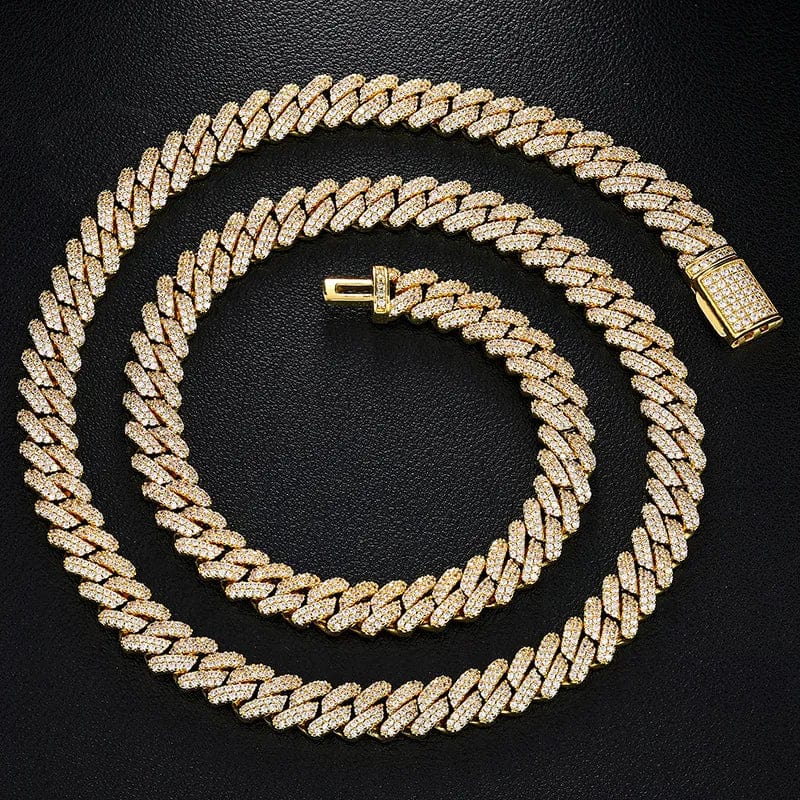 Diamond - Gold 14MM S-Link Diamond Prong Cuban Chain