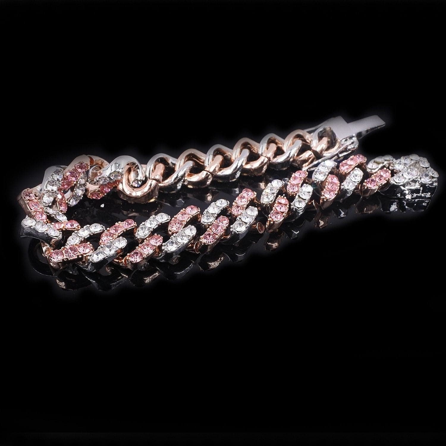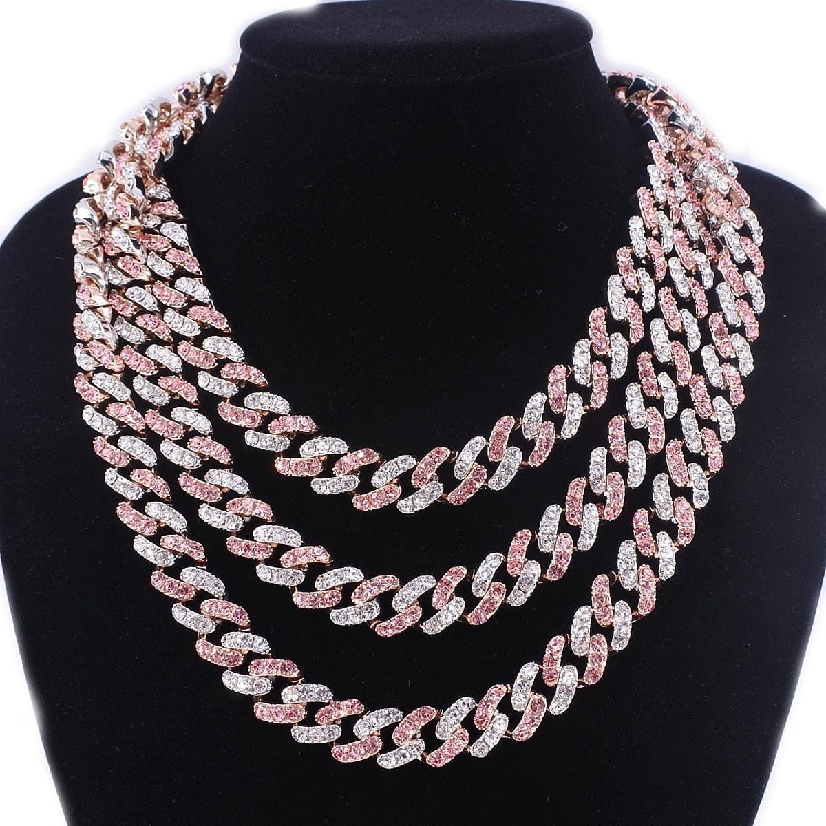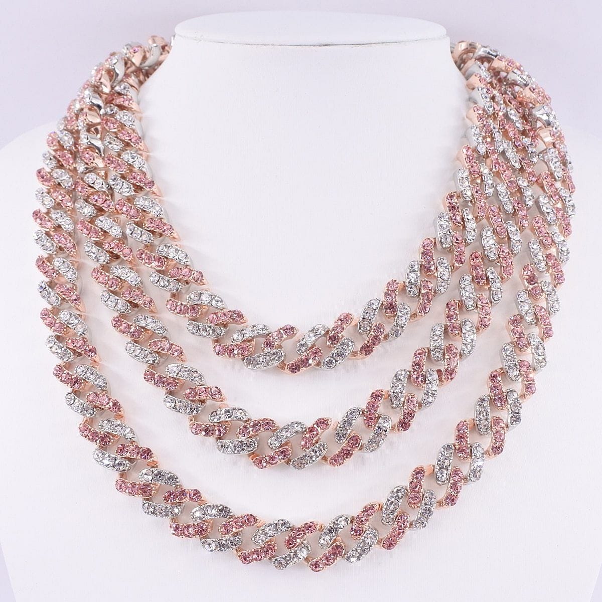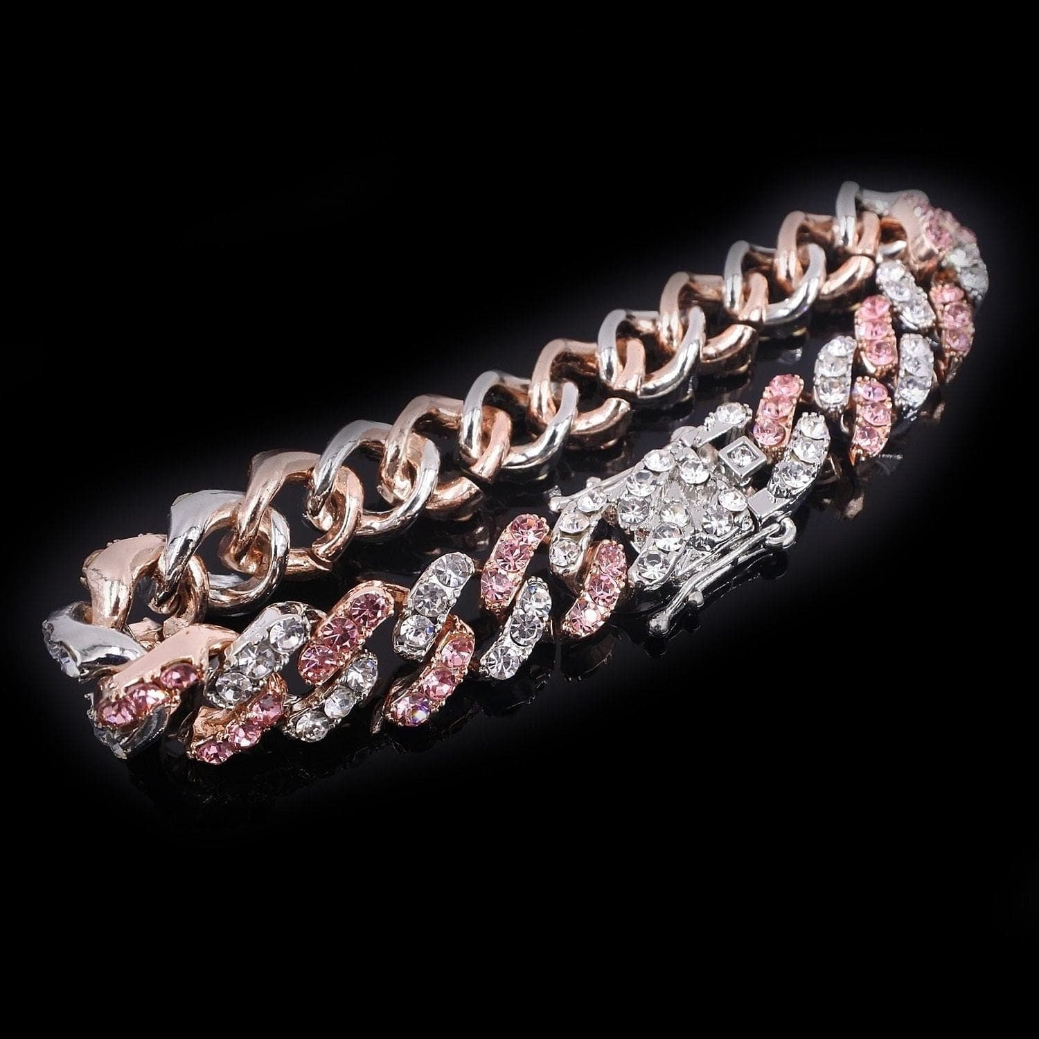 Flash some brilliance with this breathtaking two-tone Miami Cuban Link chain + FREE bracelet. It has 12mm in width and choose the length that perfectly fits you. This lightweight variant of the Cuban link chain and bracelet is embellished with a white gold pave and pink to achieve a more radiant look. It's made out of high-quality Cubic Zirconia and silver plating that would definitely make a statement to any of your outfits.