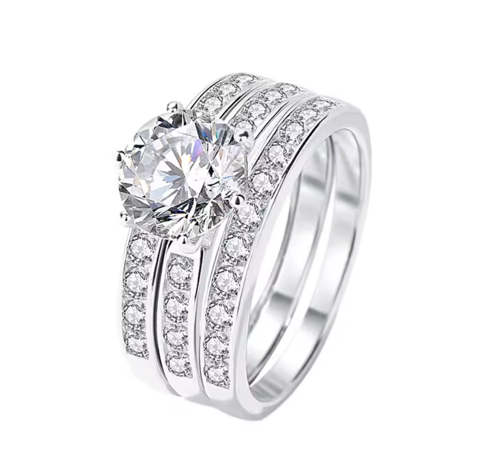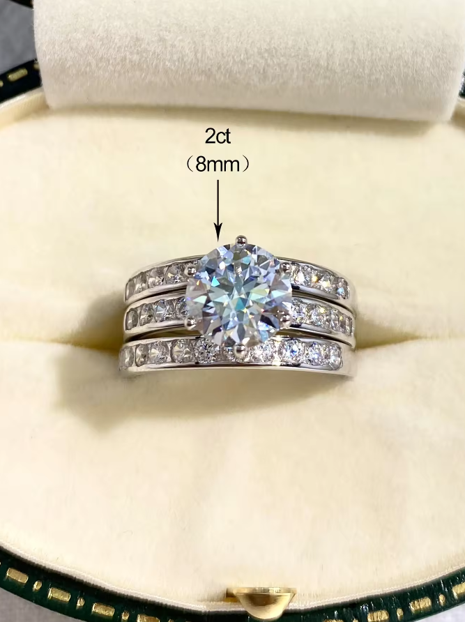 2CT Three Row Diamond 925 Sterling Silver Moissanite Ring