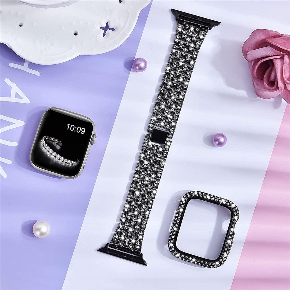 Introducing our newest, most luxurious Apple Watch strap yet – the Blinged-out Apple Watch Strap + Free Icy Case! This strap is made of high-quality stainless steel. It is adorned with dazzling crystals, making it the perfect accessory for dressing up your Apple Watch. Plus, it has a free icy case to protect your watch in style. Whether you're attending a special event or just want to add a touch of glam to your everyday look, this strap is sure to turn heads. Order now and make your Apple Watch stand out from the rest!