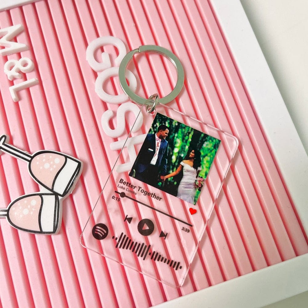 With this custom Spotify and photo keychain, you can play and share your favorite music as easily as scanning the code. On one keychain, you can have your favorite song and a photo that reminds you of happy memories. This is made of high-quality acrylic, which makes it lightweight and ideal as a gift for someone you adore.