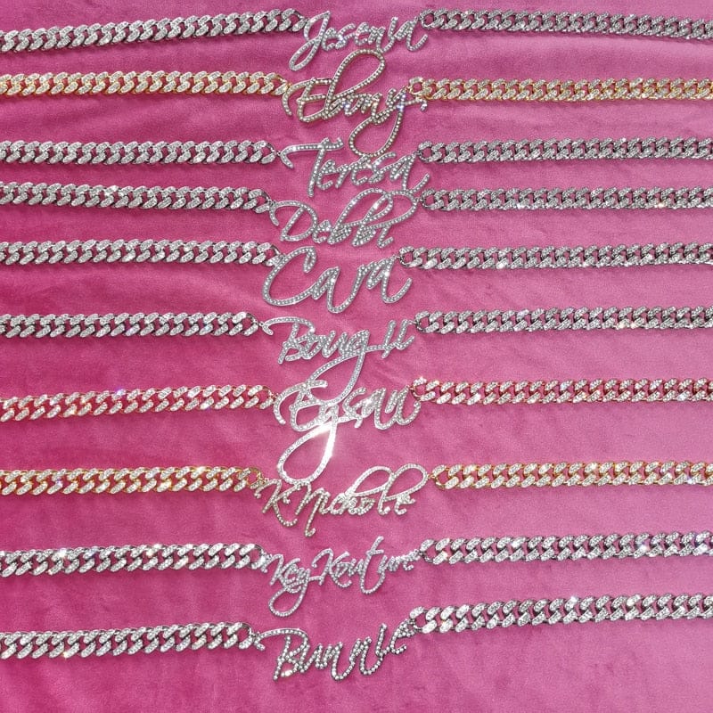 Fall in love with our newest customized trend. Our Customized scripted name Cuban link chain is the best you should have. It's made out of high-quality 18K Gold plating over brass and cubic zirconia that you would surely love.