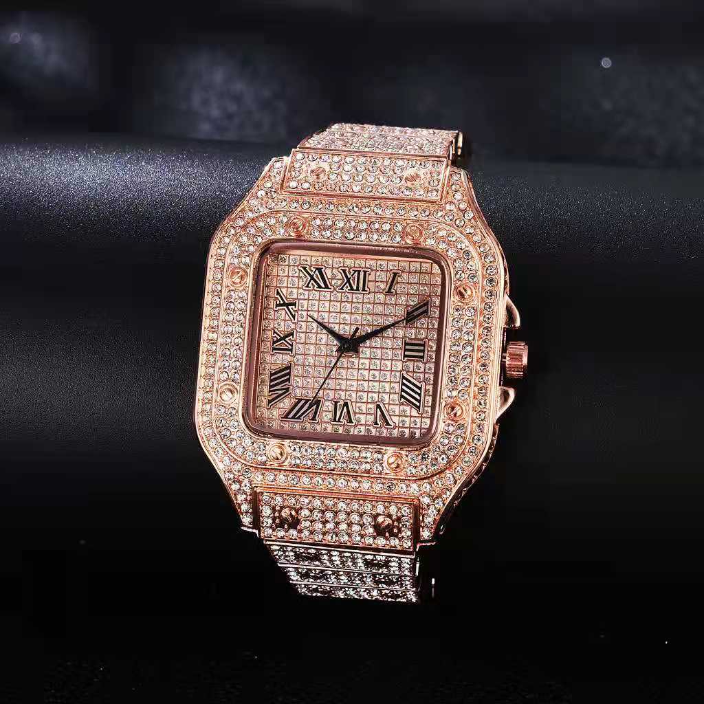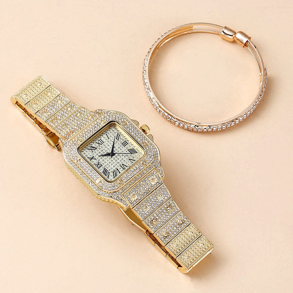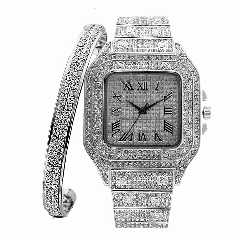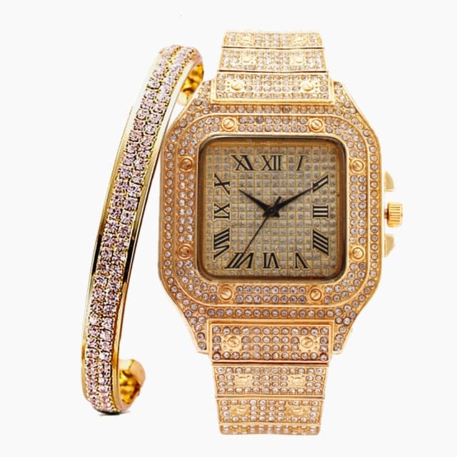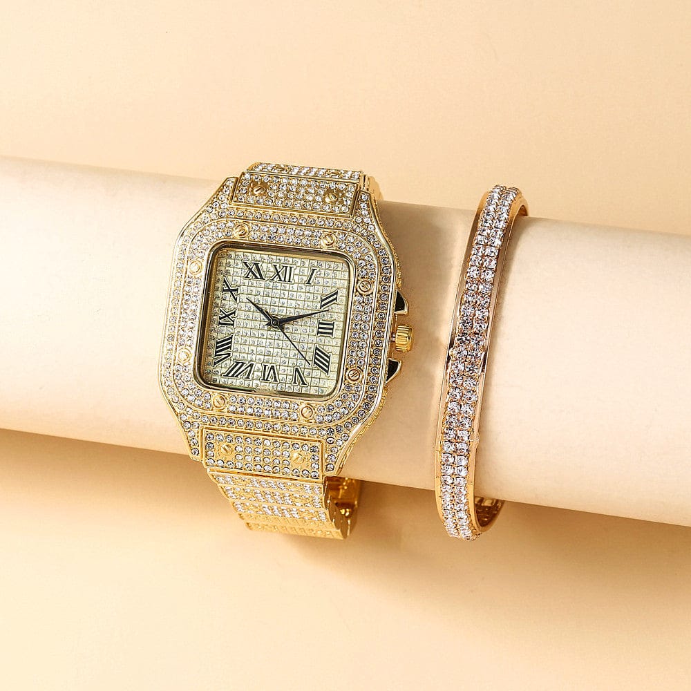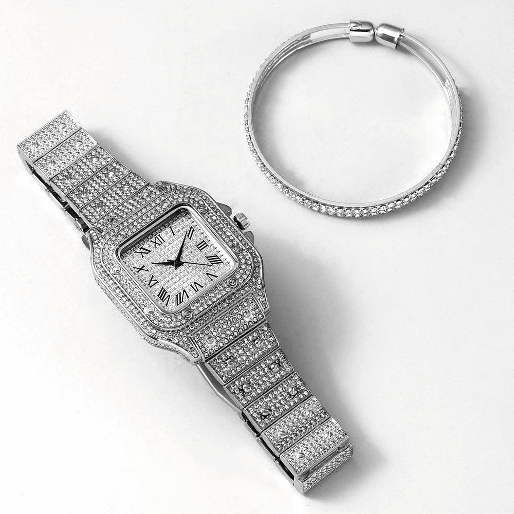 Fully Iced Roman Square Bezel Watch + FREE Iced Bangle