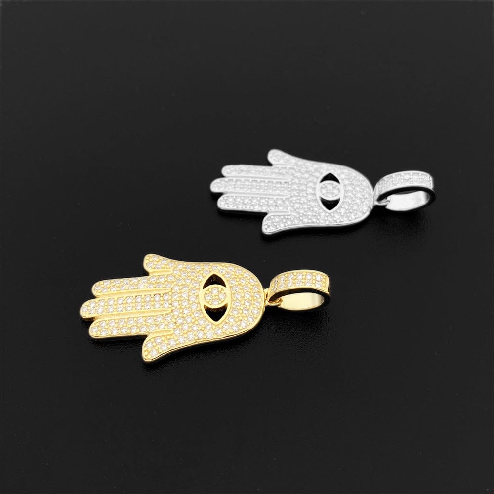 Hand of Fatima Moissanite Iced Pendant 6cm Necklace