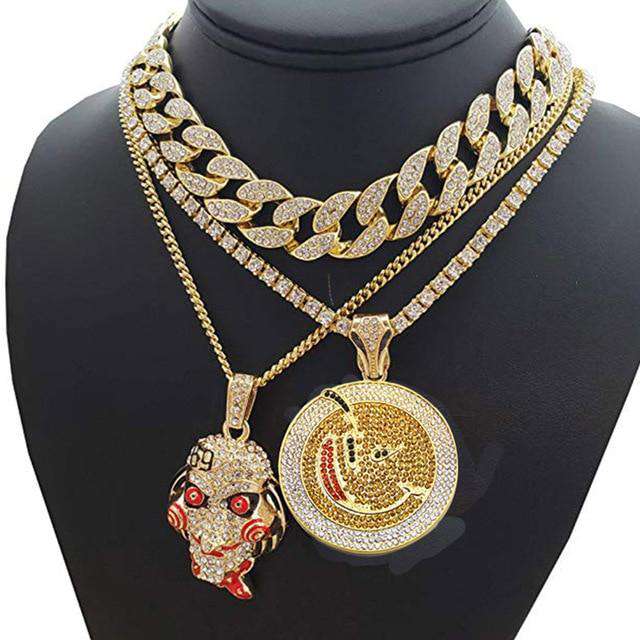 Jigsaw Pendant + Round Pendant + Cuban Choker Chain Set