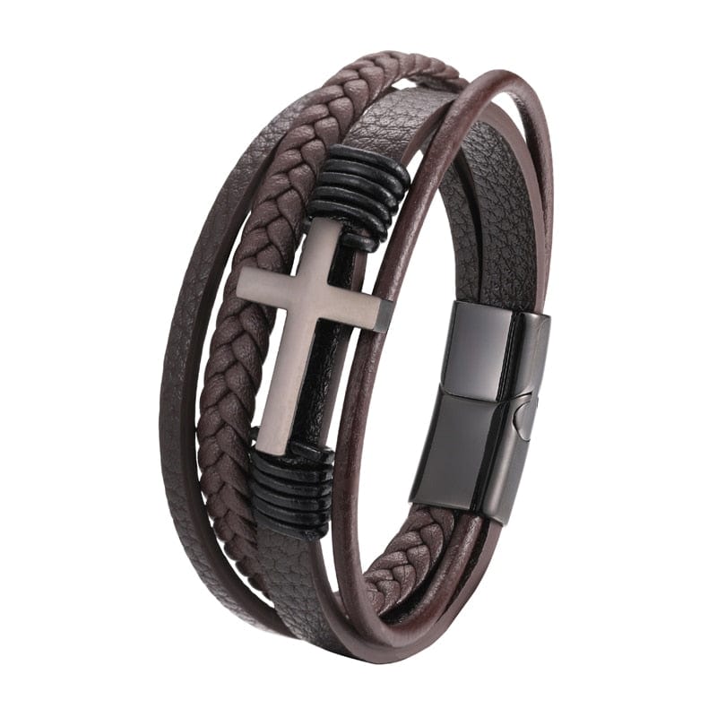 Elevate your jewelry game with this stylish bracelet that combines fashion with faith. This high-quality leather bracelet features multiple layers of stunning design, with a prominent cross symbol as the centerpiece. The intricate details and expert craftsmanship make this bracelet a must-have for religious people who want to wear their faith with pride. Whether you're dressing up or keeping it casual, this bracelet is versatile enough to suit any occasion.