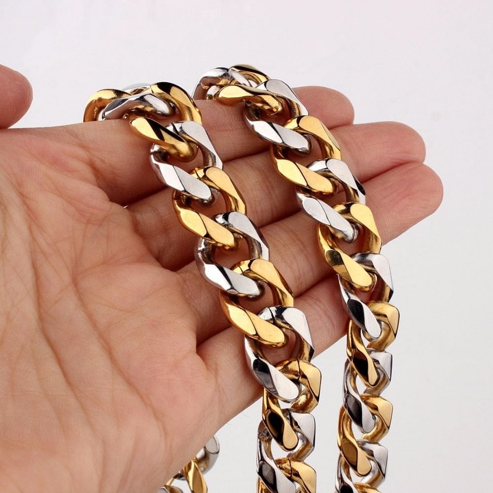 Stainless Steel Two-tone Curb Cuban Chain + FREE bracelet - BOGO