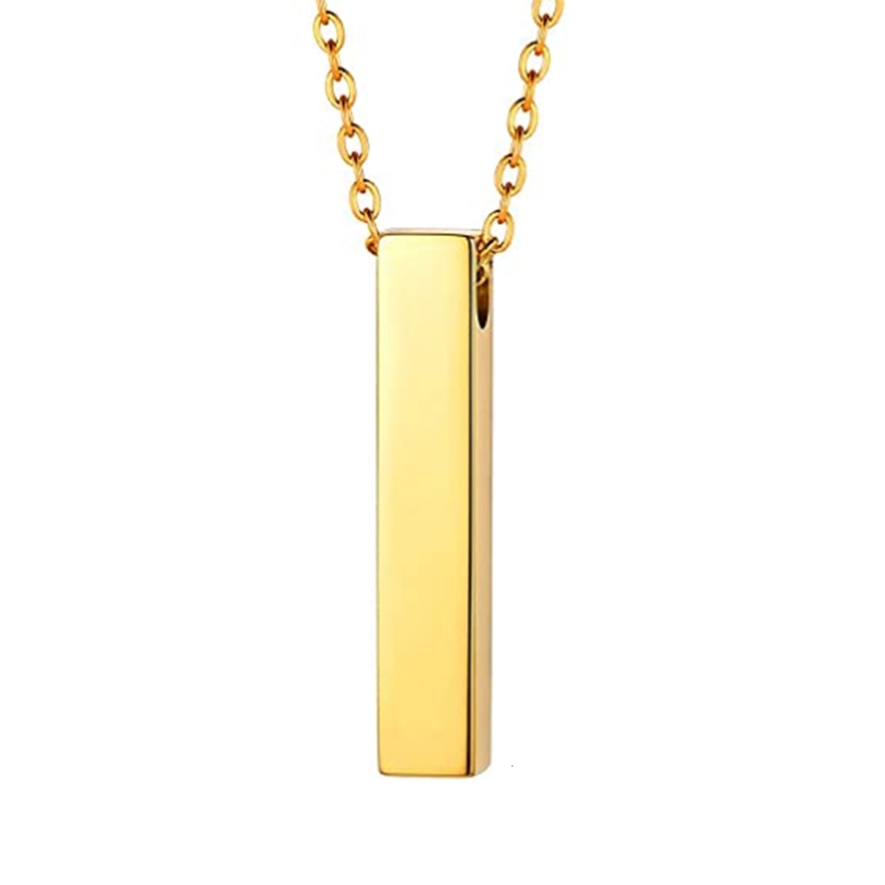 Stainless Steel Vertical Cubic Bar Container Urn Memorial Pendant Necklace
