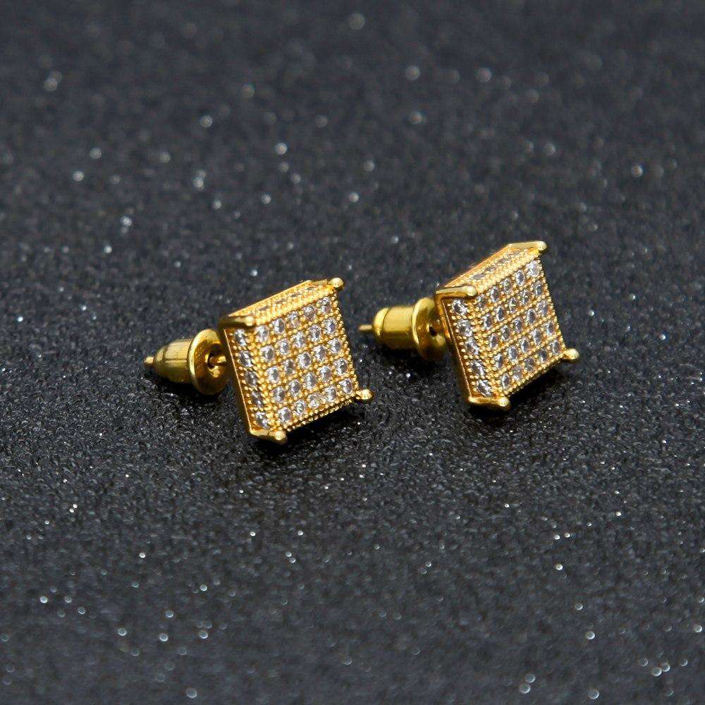 This earrings will have you lookin like you own the place. Square shape and full of ice for you to rock. Available in gold and silver, and in two sizes.