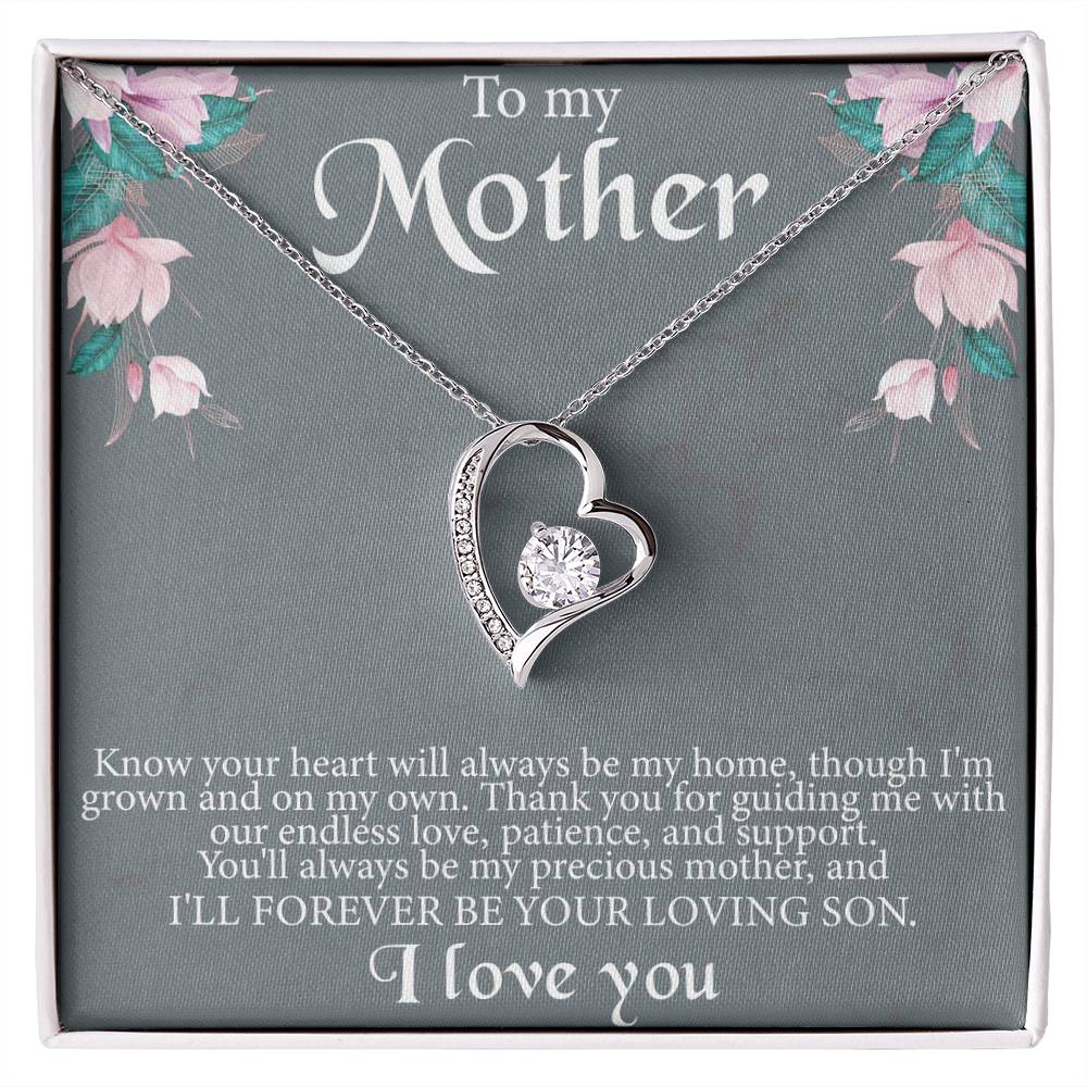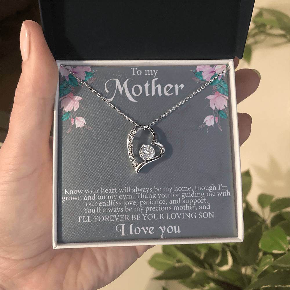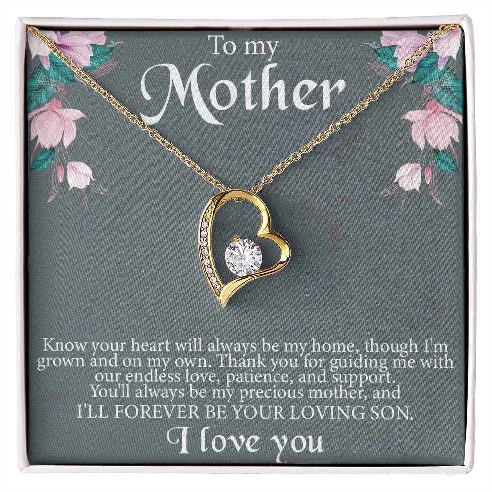 Celebrate the unbreakable bond between mother and son with our heartfelt message card and delicate heart necklace. Show your gratitude and make her day special with a unique gift that she can wear daily. Our customers rave about our expressive message cards and high-quality jewelry.