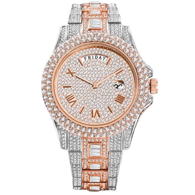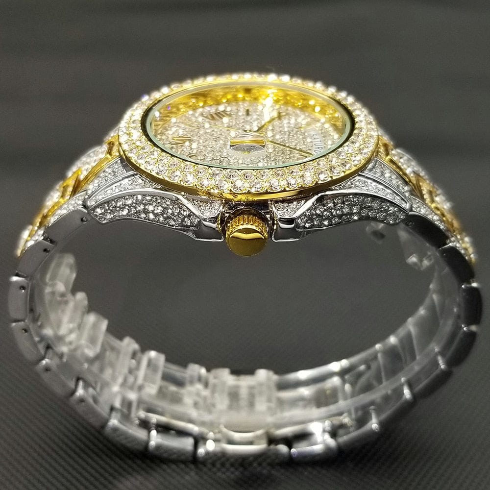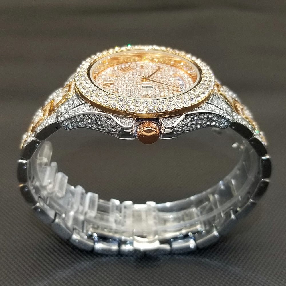 ELEVATE YOUR LOOK TO A HIGHER LEVEL WITH THIS LUXURIOUS ICED OUT WATCH.
