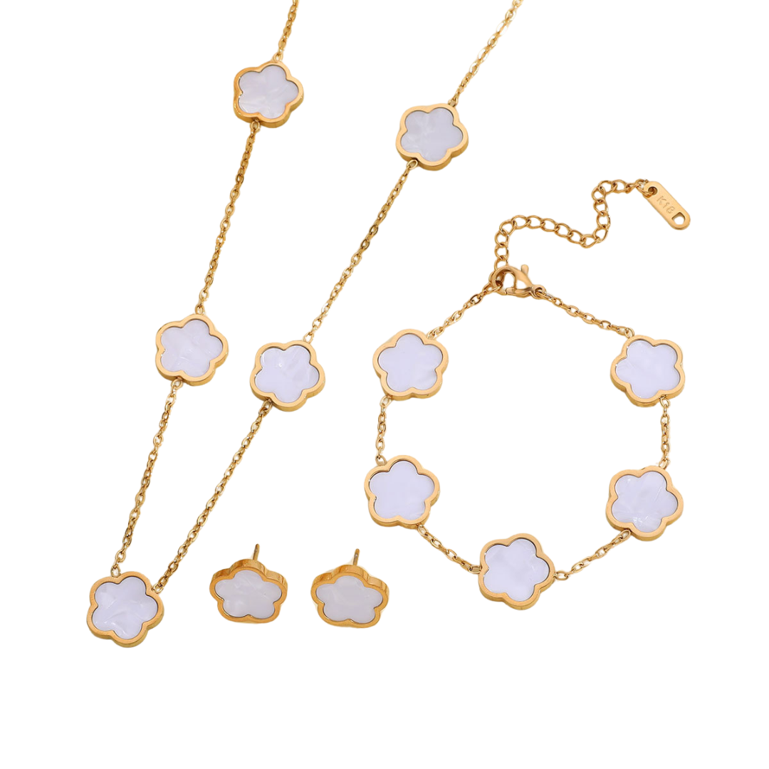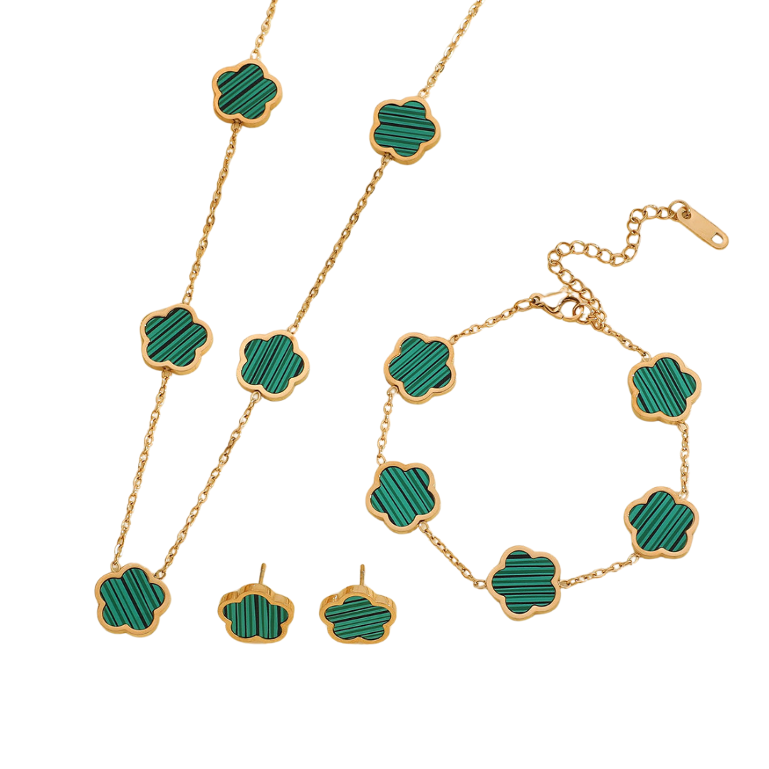VVS Jewelry Lucky Clover Bracelet, Necklace and Earrings Set